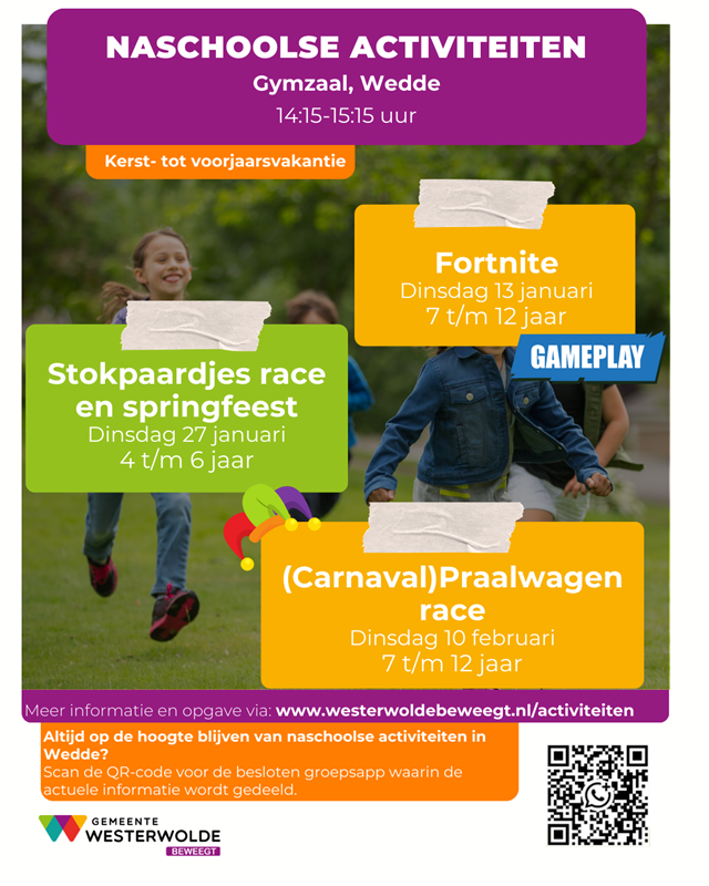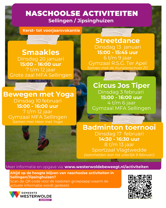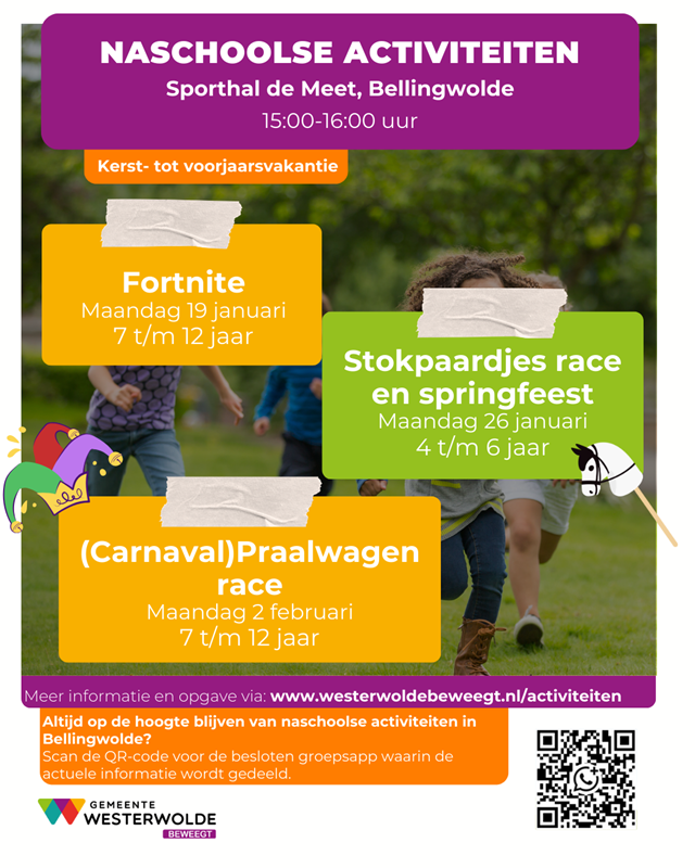 De nieuwe periode van het schooljaar is gestart. Samen met sportverenigingen en ons beweegteam hebben wij weer een leuk programma gemaakt. Meld je via deze website aan voor de activiteiten. Klik op het kopje 'activiteiten' bovenin. Zoek de activiteit waarvoor je je wilt aanmelden en vergeet vervolgens niet om de aanmelding te versturen! Dan zien we je daar.