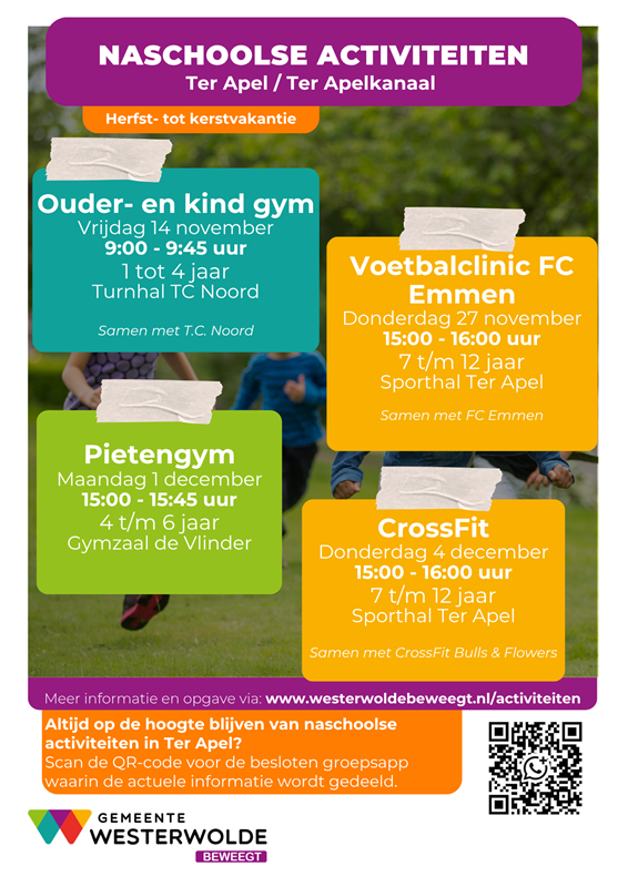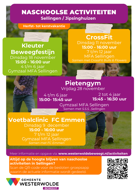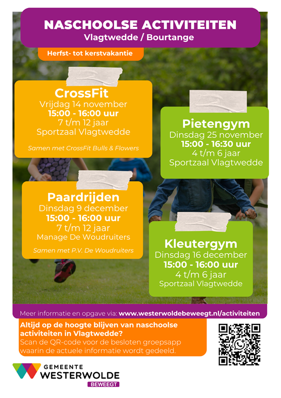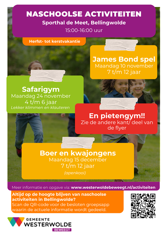 De nieuwe periode van het schooljaar is gestart. Samen met sportverenigingen en ons beweegteam hebben wij weer een leuk programma gemaakt. Meld je via deze website aan voor de activiteiten. Klik op het kopje 'activiteiten' bovenin. Zoek de activiteit waarvoor je je wilt aanmelden en vergeet vervolgens niet om de aanmelding te versturen! Dan zien we je daar.